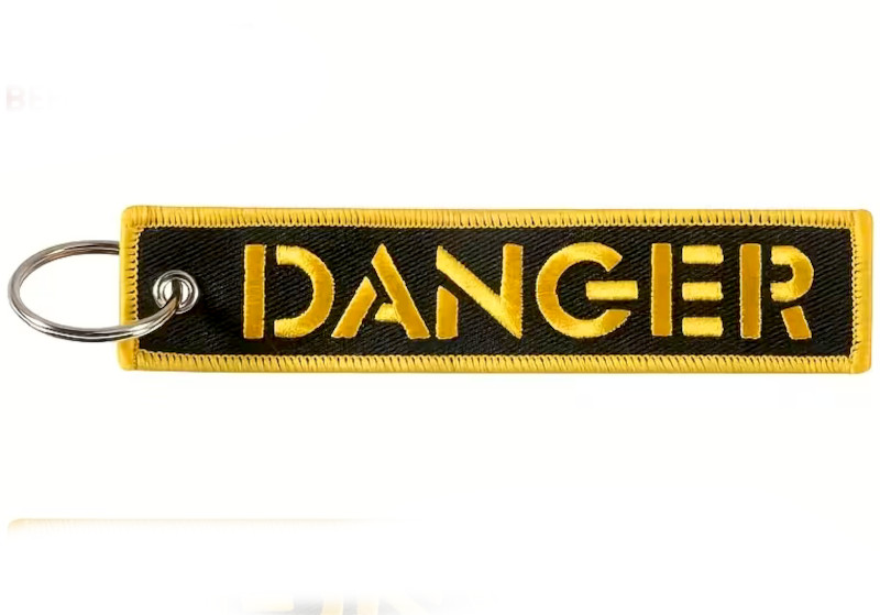 Klíčenka s výšivkou z obou stran "Danger" (nebezpečí)