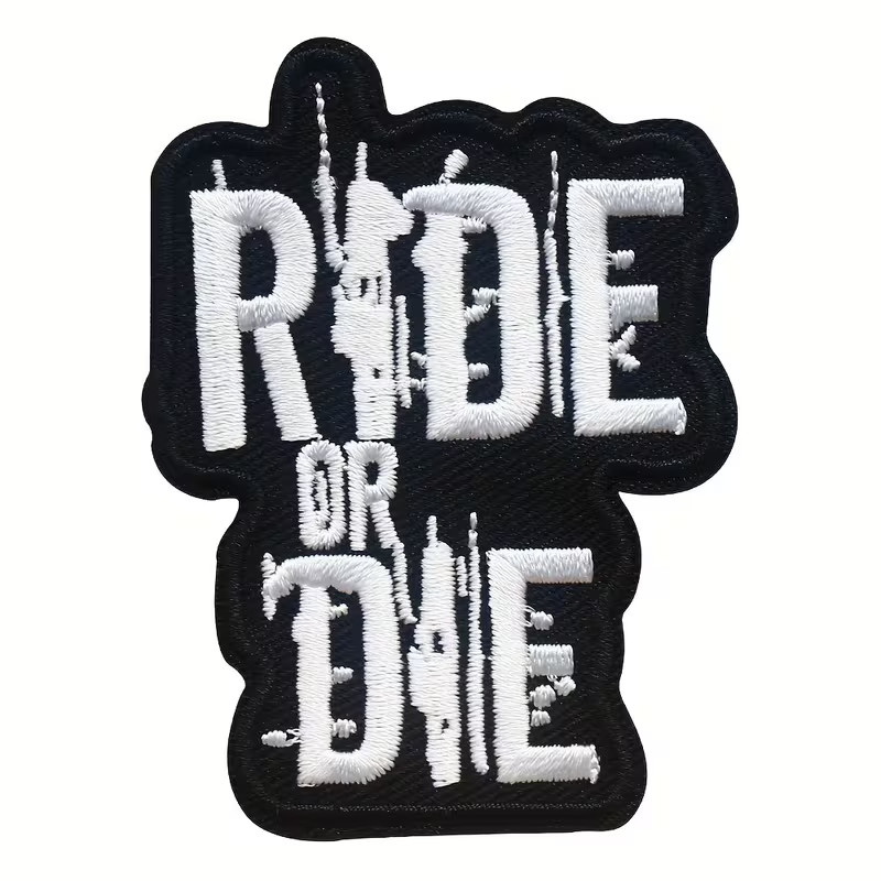 Motorkářská nášivka Ride or Die, rozměr 6,5 x 5 cm . Možnost nažehlení, nebo přišití.