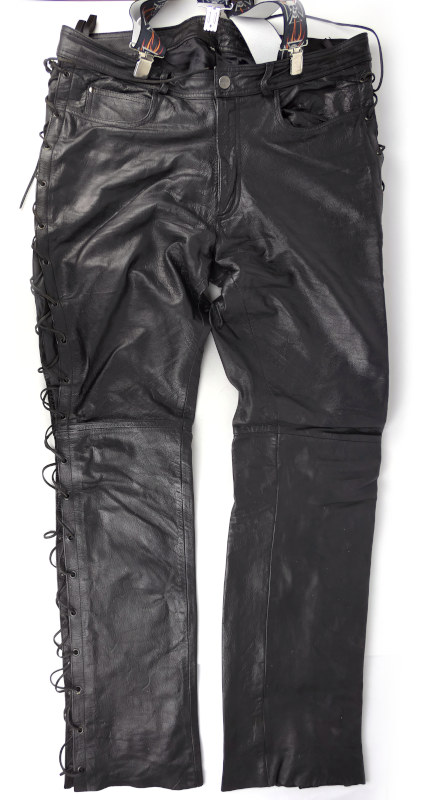 - Pánské kožené kalhoty HIGHWAY se šněrováním + kšandy, vel: 54/XL