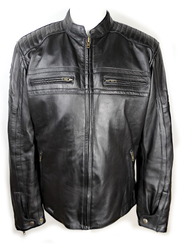 Styl: klasický urban / chopper design s prošívanými panely na ramenou, bronzové kovové zipy YKK