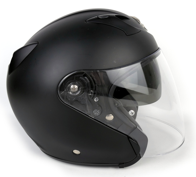 Otevřená helma Scorpion EXO-220 černá matná s velkým plexi a sluneční clonou, velikost L 60 cm